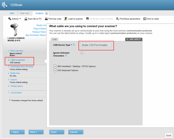 Scanner configuration: Symbol or Zerbra LS2208 - DS2278 - DS2208 (COM PORT VERSION)