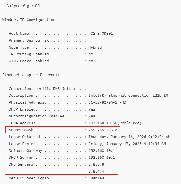 The Lane 3000 by default, is automatically set on DHCP and gets assigned all the required addresses. Once done, when you will set it up to STATIC IP, the unit will keep all IP setting, therefore you might not need to enter the above info since it will probably already be written on the TPV. If not simply follow the procedure above.